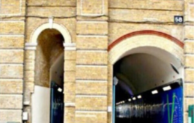 Paint stripping to exposed brickwork in a archway in London. Brick surface was painted, follwing a fire in the arch the brickwork was cleaned and completly stripped.